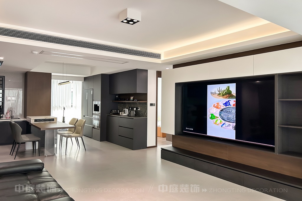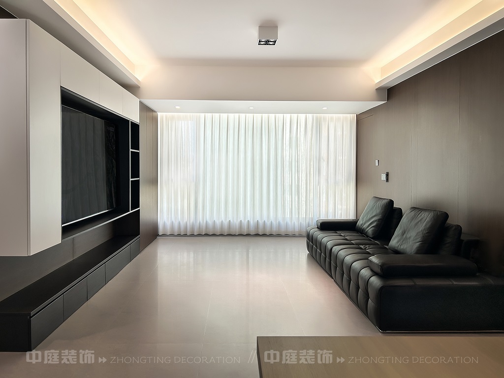 瀏覽量:75客廳以現(xiàn)代黑白灰極簡(jiǎn)風(fēng)格為核心,大面積白紗簾引入自然光線,黑色皮質(zhì)沙發(fā)質(zhì)感高級(jí)。開放式布局,深灰櫥柜與木質(zhì)餐桌形成材質(zhì)對(duì)比,線性吊燈提升精致感,功能與美學(xué)兼具,營(yíng)造現(xiàn)代簡(jiǎn)約的烹飪用餐氛圍。輕柔窗簾與柔和燈光,打造靜謐休息空間。精致的材質(zhì)選擇與合理的功能規(guī)劃,詮釋了“少即是多”的現(xiàn)代簡(jiǎn)約居住美學(xué)。