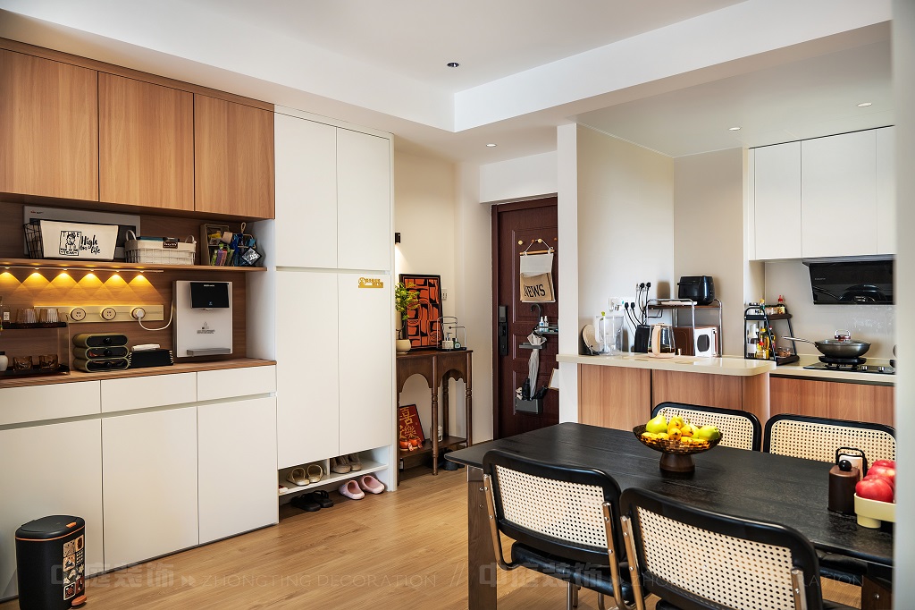 瀏覽量:118每一處細(xì)節(jié),都是他們對(duì)“把日子過成詩,讓家裝滿故事”的詮釋。以原木的溫潤、白調(diào)的清爽為基底,在玄關(guān)處嵌入復(fù)古邊幾,擺上藝術(shù)感的裝飾畫,仿佛時(shí)光在此打了個(gè)溫柔的結(jié);餐廚區(qū)的咖啡角裝滿對(duì)生活的小確幸,與開放式廚房的煙火氣交融,是晨起的咖啡香與深夜的飯菜香的浪漫邂逅;客廳里,黑色皮沙發(fā)搭配復(fù)古風(fēng)抱枕,一旁的藝術(shù)綠植蜿蜒生長(zhǎng),就像主人對(duì)生活的熱愛肆意又熱烈。