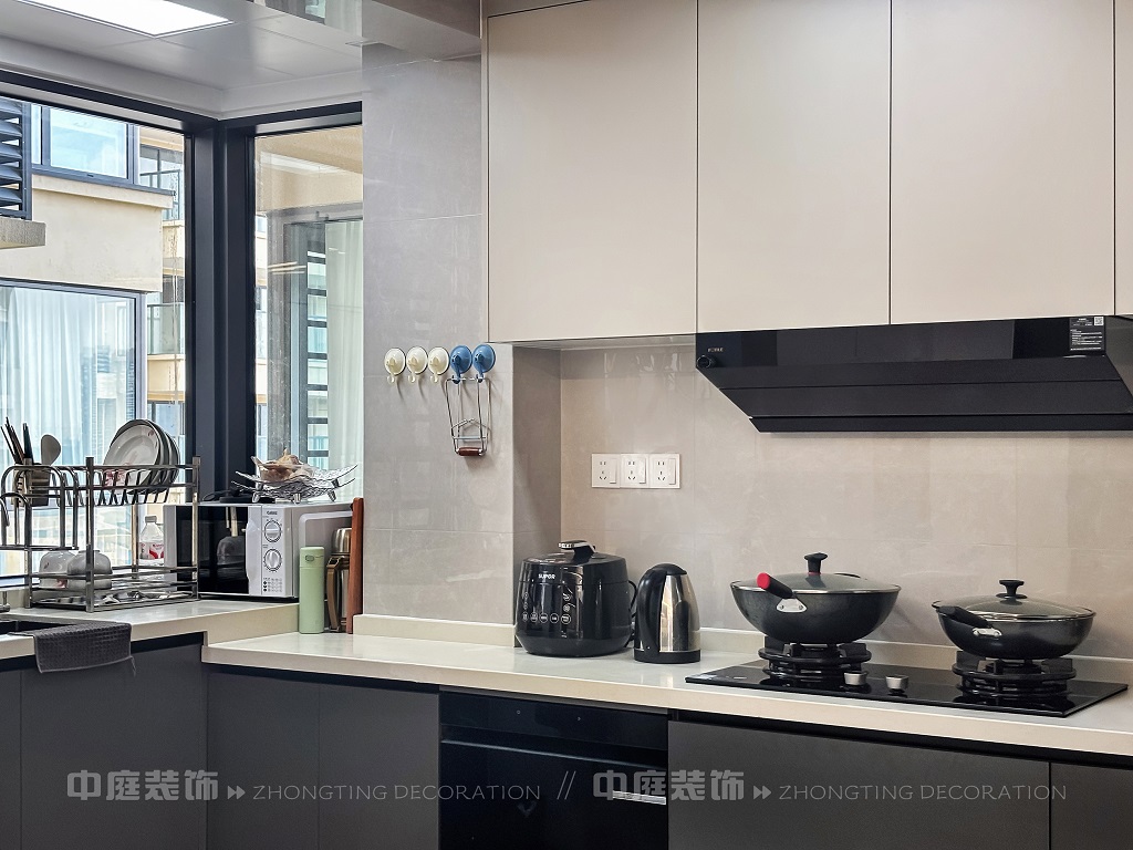 瀏覽量:211整個(gè)家以黑、白、灰為主色調(diào),簡(jiǎn)約又高級(jí)??蛷d電視墻的設(shè)計(jì)很有層次,黑白柜體搭配大理石元素,質(zhì)感拉滿(mǎn);餐廳的黑色大理石餐桌盡顯格調(diào)。玄關(guān)的黑色木門(mén)和“喜樂(lè)平安”的細(xì)節(jié),又添了幾分溫馨。廚房的灰色系櫥柜實(shí)用又美觀(guān),衛(wèi)生間把洗衣區(qū)和洗漱區(qū)結(jié)合,大理石臺(tái)面太顯質(zhì)感了!整體風(fēng)格利落大氣,每一處都透著精致,是現(xiàn)代年輕人都愛(ài)的極簡(jiǎn)高級(jí)感沒(méi)錯(cuò)了~